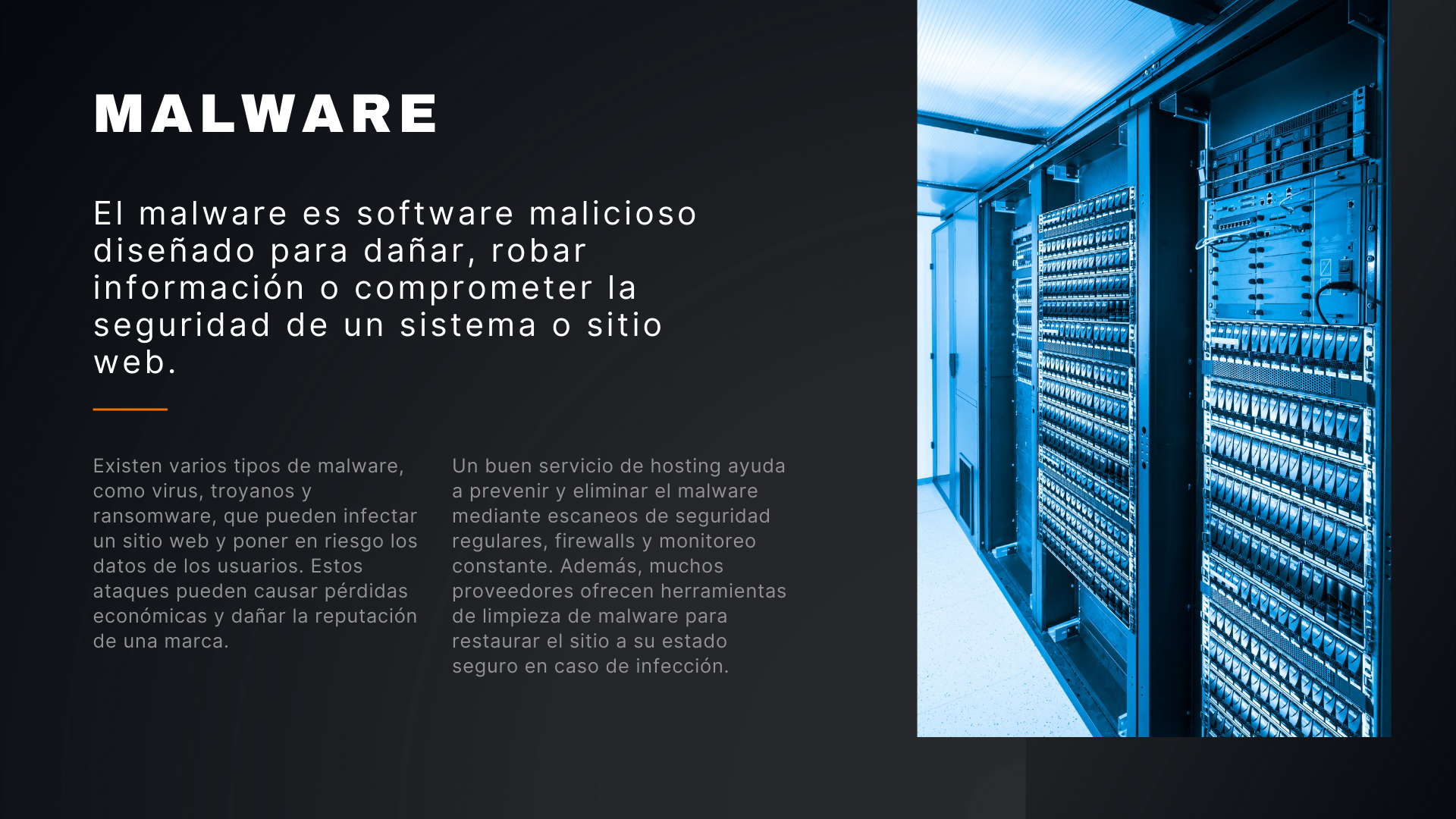 El malware es software malicioso diseñado para dañar, robar información o comprometer la seguridad de un sistema o sitio web.