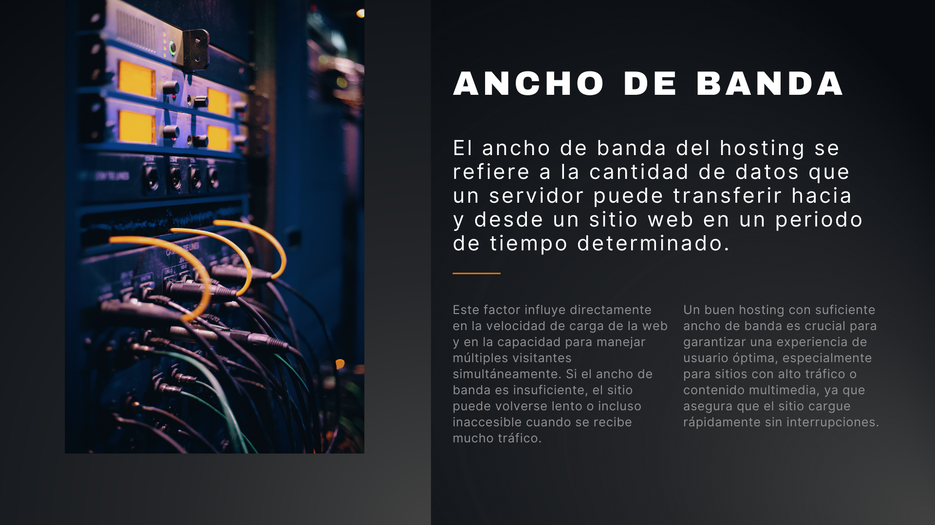 Este factor influye directamente en la velocidad de carga de la web y en la capacidad para manejar múltiples visitantes simultáneamente. Si el ancho de banda es insuficiente, el sitio puede volverse lento o incluso inaccesible cuando se recibe mucho tráfico.