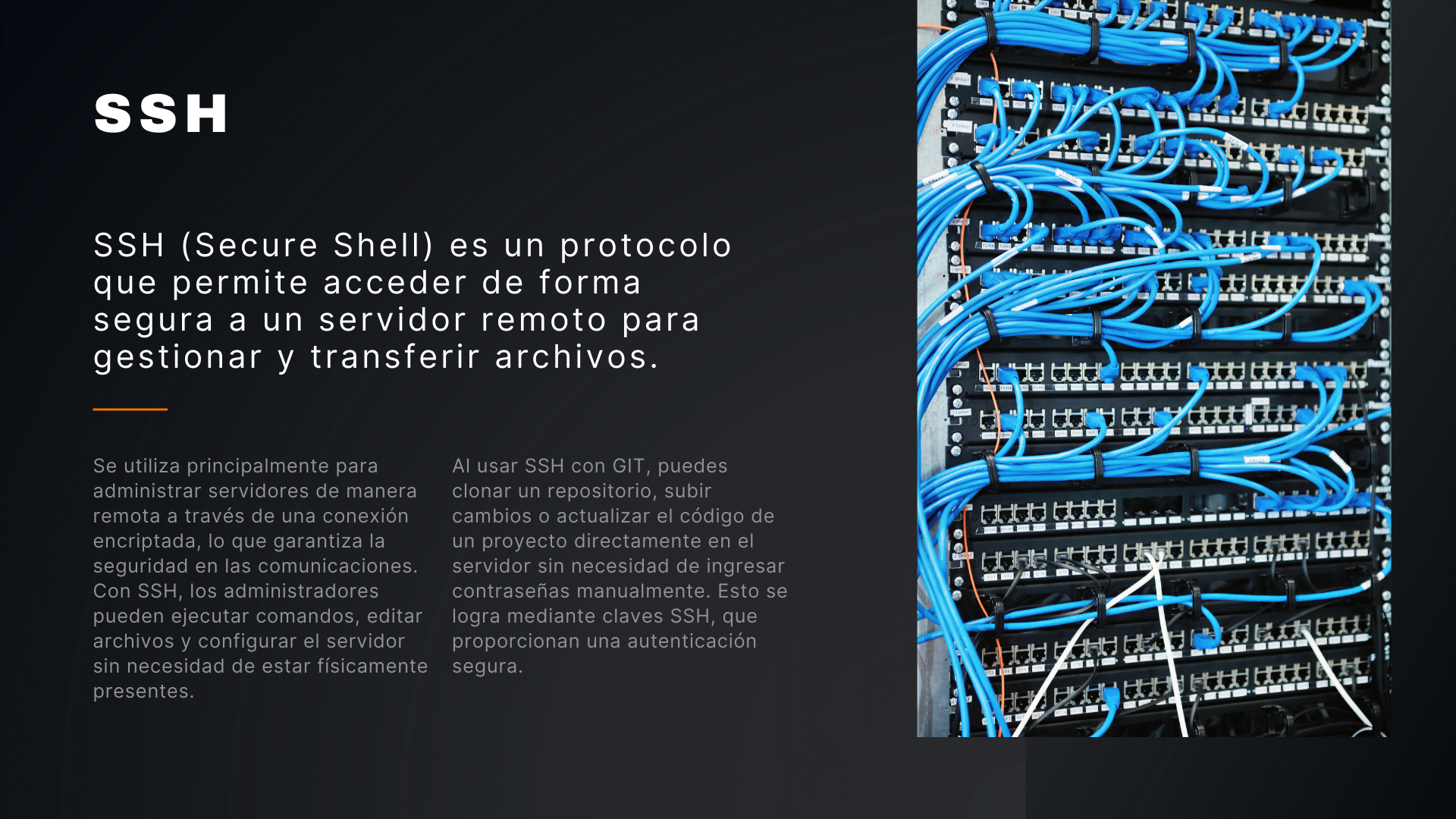 SSH (Secure Shell) es un protocolo que permite acceder de forma segura a un servidor remoto para gestionar y transferir archivos.