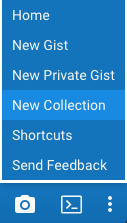 The Collections icon opens the Home Collection by adding its Gist id to the ?collection
