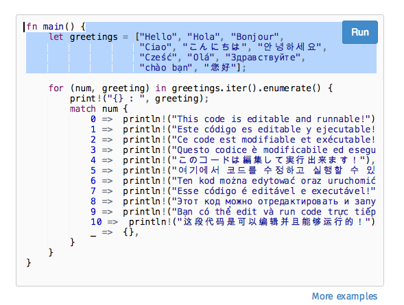 Note: Text highlighting with mouse is not supported in servo yet. (At least it does not work for me.) The code example uses the Ace editor which somehow (probably servo sends wrong position) highlights the wrong text sections. |