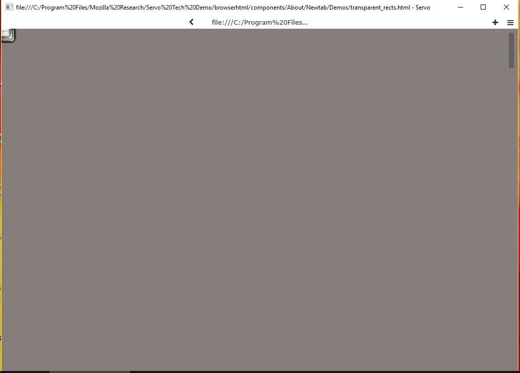 In the latest nightly build the rects have some kind of square border around them. Is this servo/webrender#1943? Edit: This shadow bug is fixed now. The incomplete rect flickering still persists however. |
