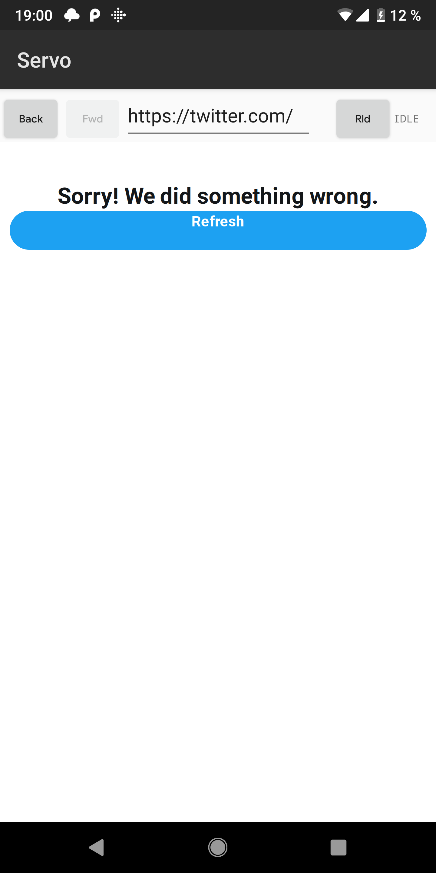 I get the "Sorry! We did something wrong" page on Android: