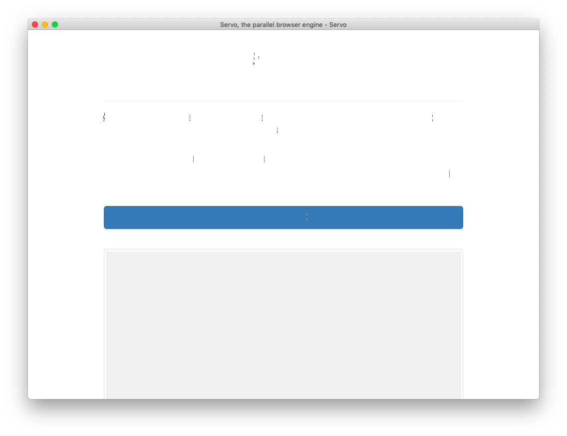 There are supposed to be fonts and images showing up; it loads https://servo.org/ by default. That's a surprising result! |