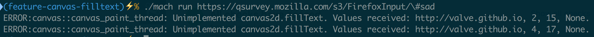 It may be interesting to provide a mock implementation for fillText or other missing Canvas2D methods before the long term webrender/pathfinder solution lands (any ETA on this? I'm assuming that it can take some time). Some WebGL demos that I try crash due to the missing methods and usually is to render a sprite not related to the game itself (e.g. the fps stats). I'd prefer some "unimplemented method" warnings in the console instead of a crash in those cases. Also a lot of WebGL tests are exiting early because of the missing fillText() function, it would be good to enable them. What do you think? |