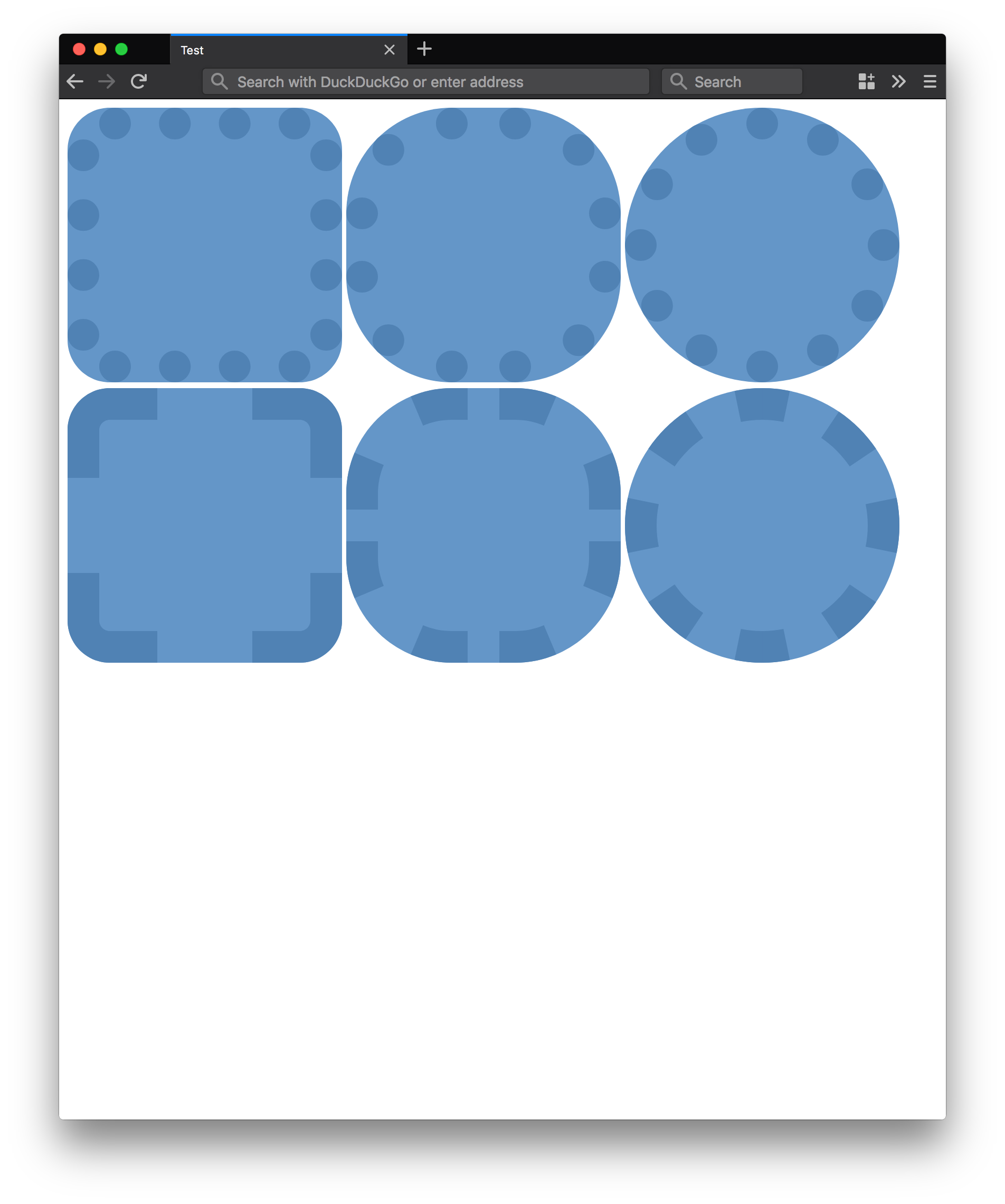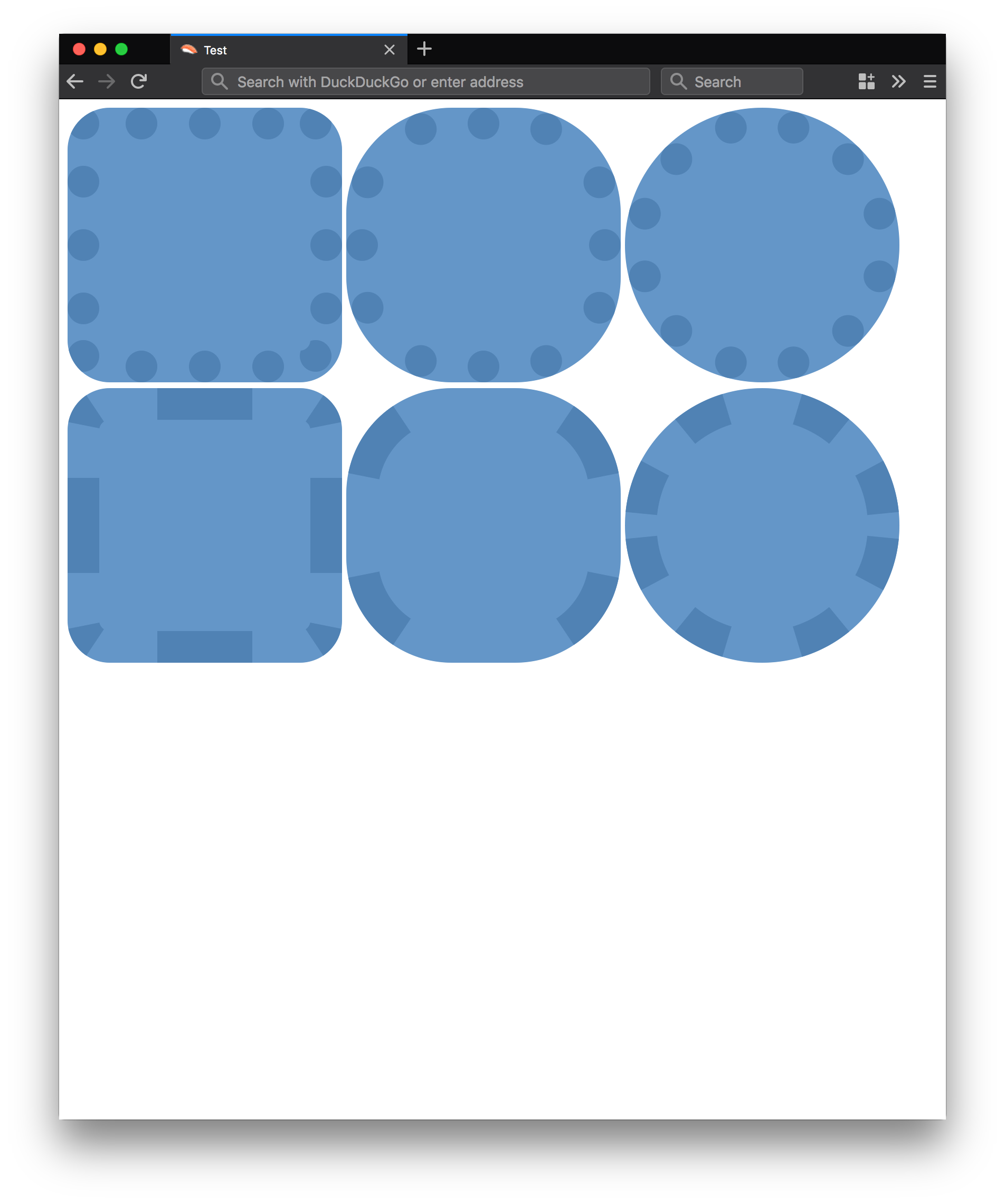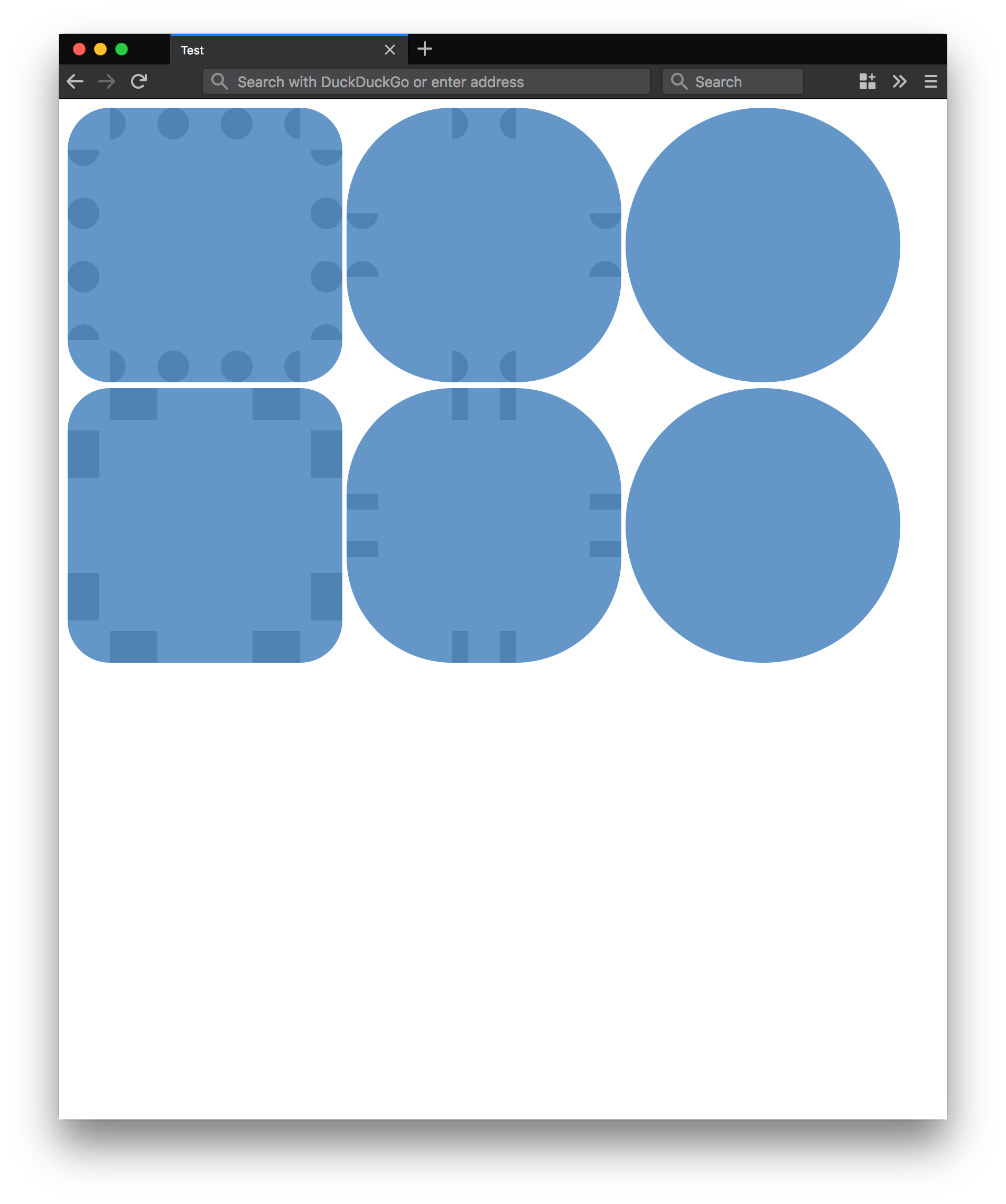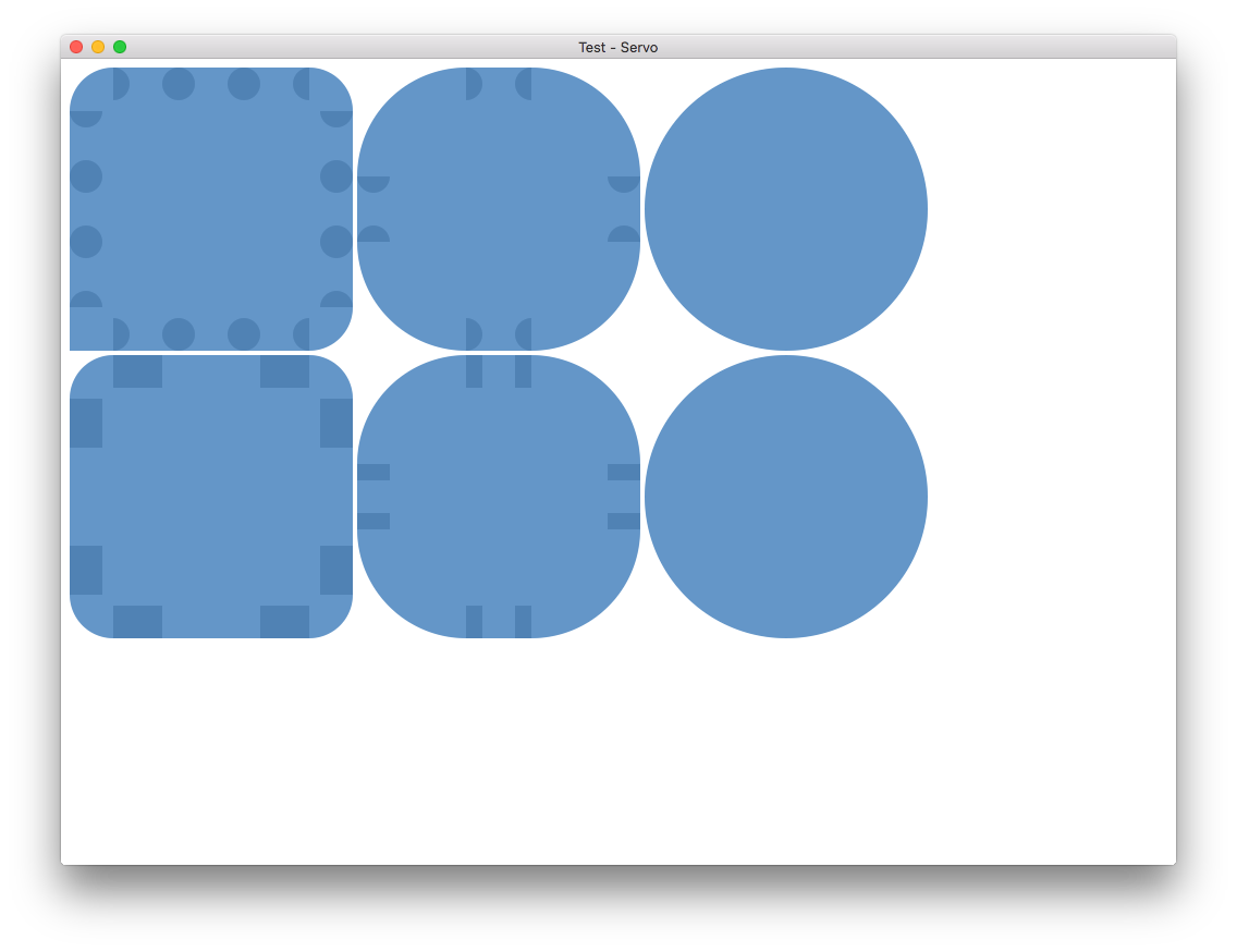 There seems to have been a recent regression in the way rounded borders are rendered. Here is a test case, with screenshots below.