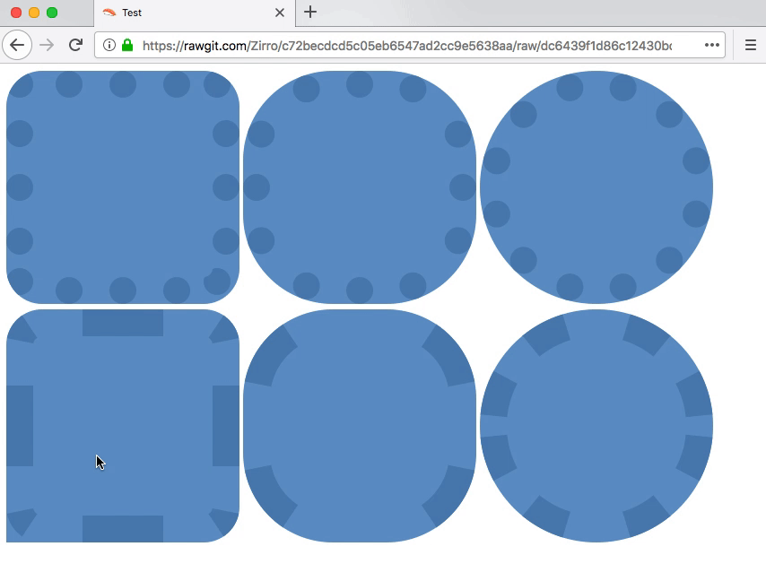 Hrm. I'm having trouble reproducing this one as well. I do see artifacts in https://rawgit.com/Zirro/03f0e2d19b087db29b1f069e014e3ee5/raw/0f32535d70e56185e01e4f9be860afc4dc4fec79/fireworks.html, though they don't seem to be related to to dot or dash rendering. |