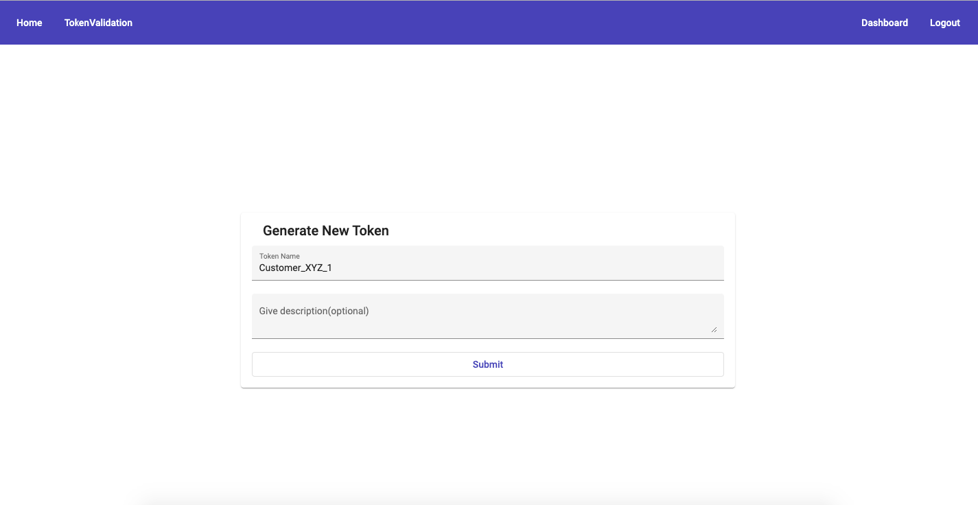 List of tokens will be displayed on dashboard page with details such as validity, status, name. New token can be generated using 'Create' button.