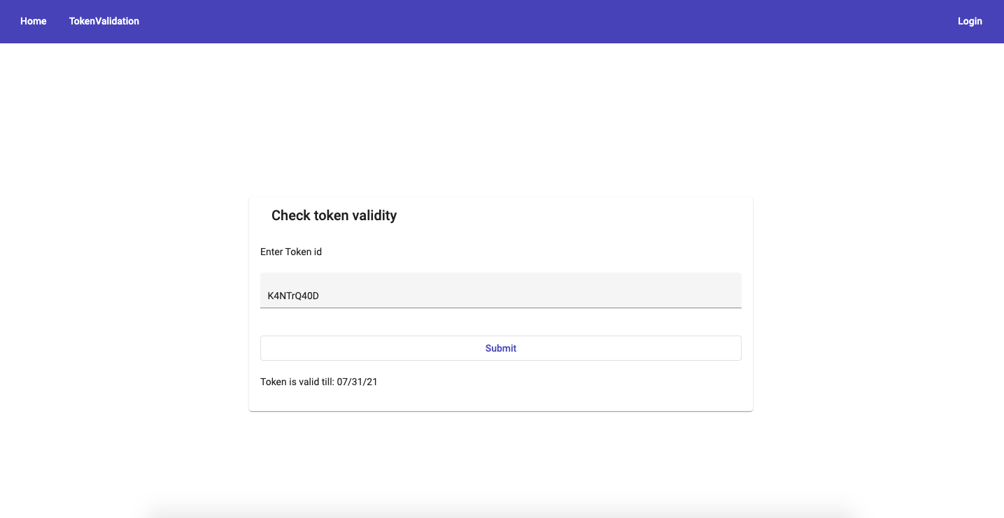 Any user or customer can use 'Token Validation' option to check the validity of specific token.