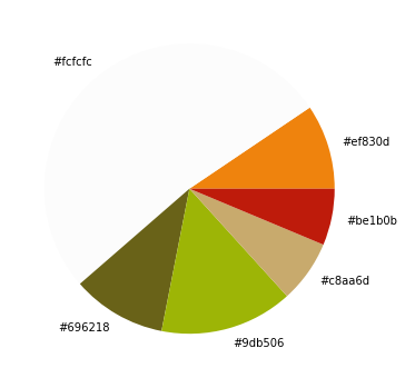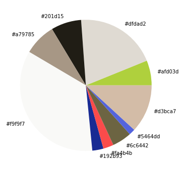 here you can see some outputs of the programe. In each output a pie chart is shown from main color of image to help user to decide what colors are exist in image. after entering the input color in hex number, user can see the segments which contain that color OR any close color to that and how many proprortion each segment is from whole image.