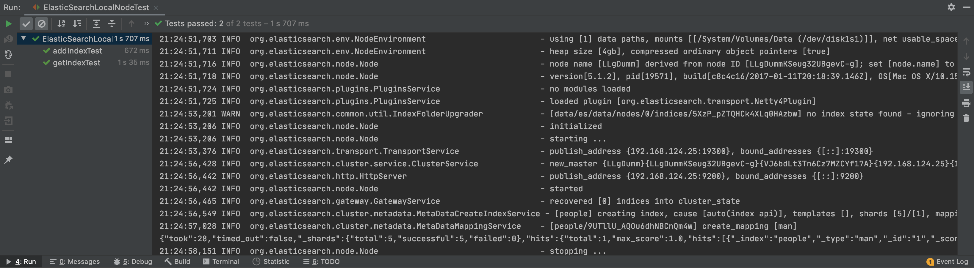 实现单元测试ElasticSearchLocalNodeTest