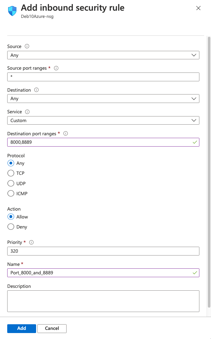 Note for Azure Users If you are using Azure cloud machines, you will need to open TCP ports 8000 and 8889 in the Azure firewall on your Linux server, and view the GUI using the public IP address of your Linux server. To reach the firewall settings, start at https://portal.azure.com/#home and click "Virtual machines", click the name of your Linux server, and click Networking.