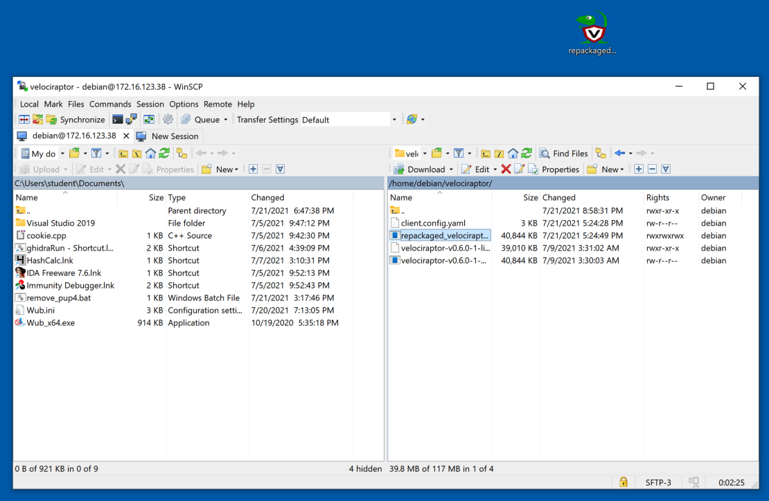 Drag the repackaged_velociraptor.exe file to your Windows desktop, as shown below.