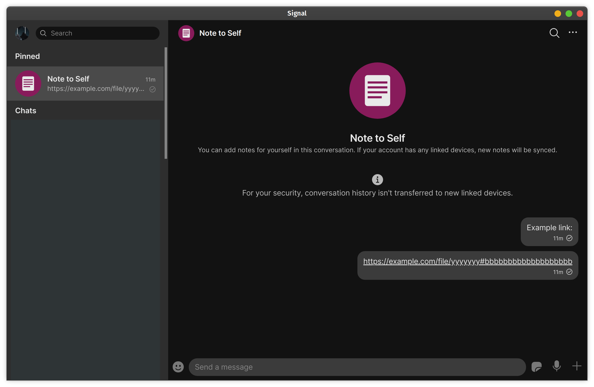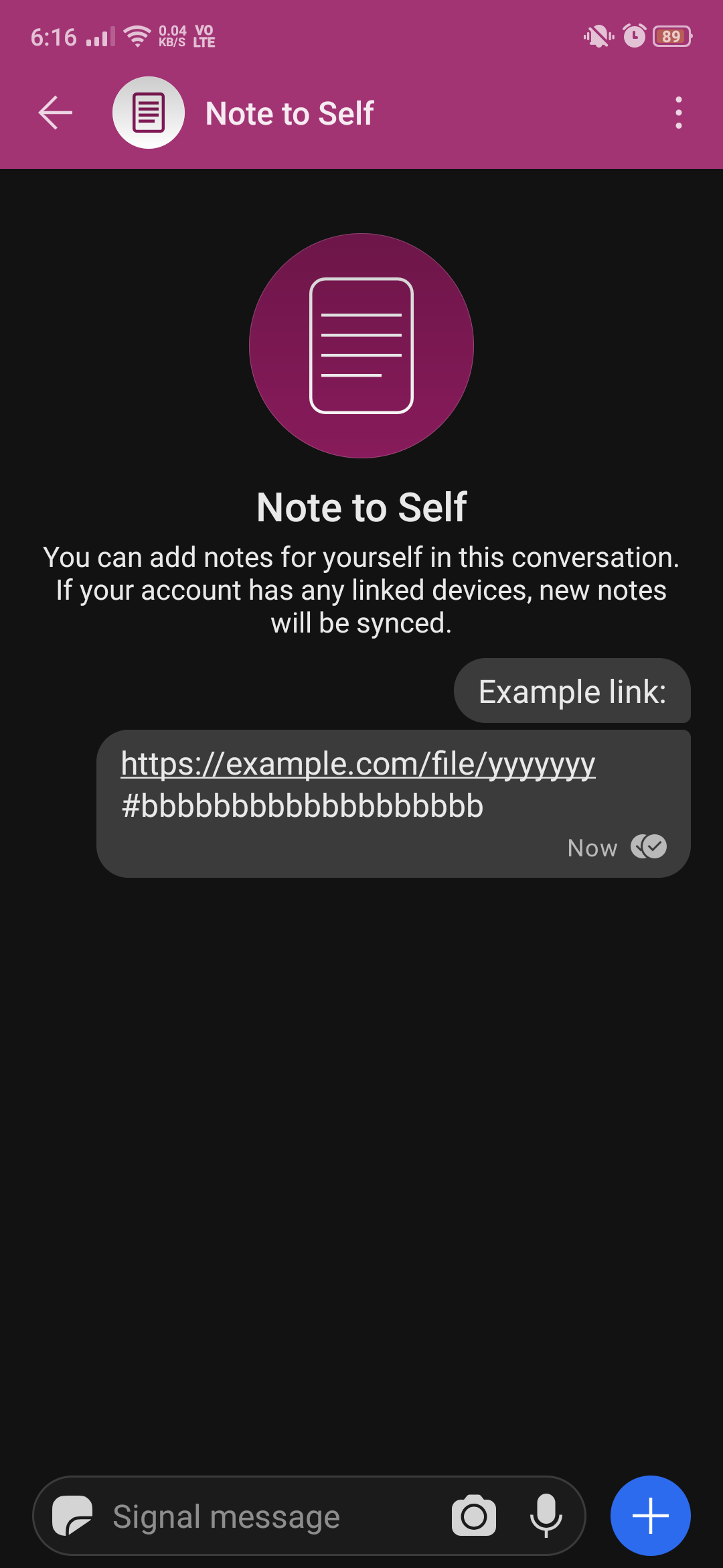 Actual result: Signal only links the message till # (https://example.com/file/yyyyyyy) and rest of it becomes as plain text.