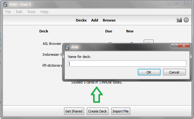 Now that you have some data, it's time to see how Anki works out of the box. Launch Anki, click on the name of the deck, then click "Study Now". (You may want to first use the settings dropdown to specify things such as the number of new cards per day.)