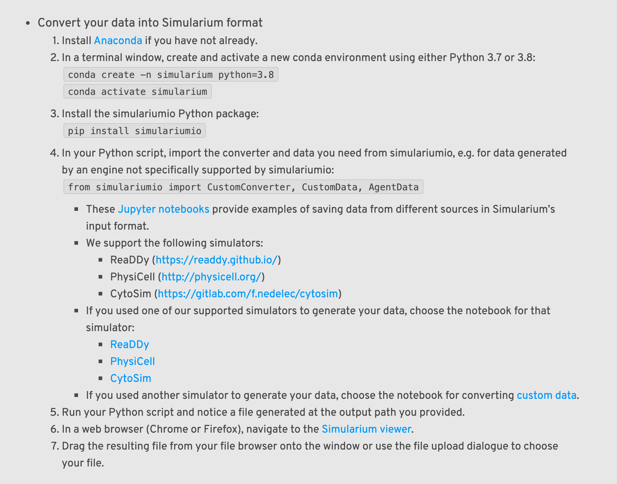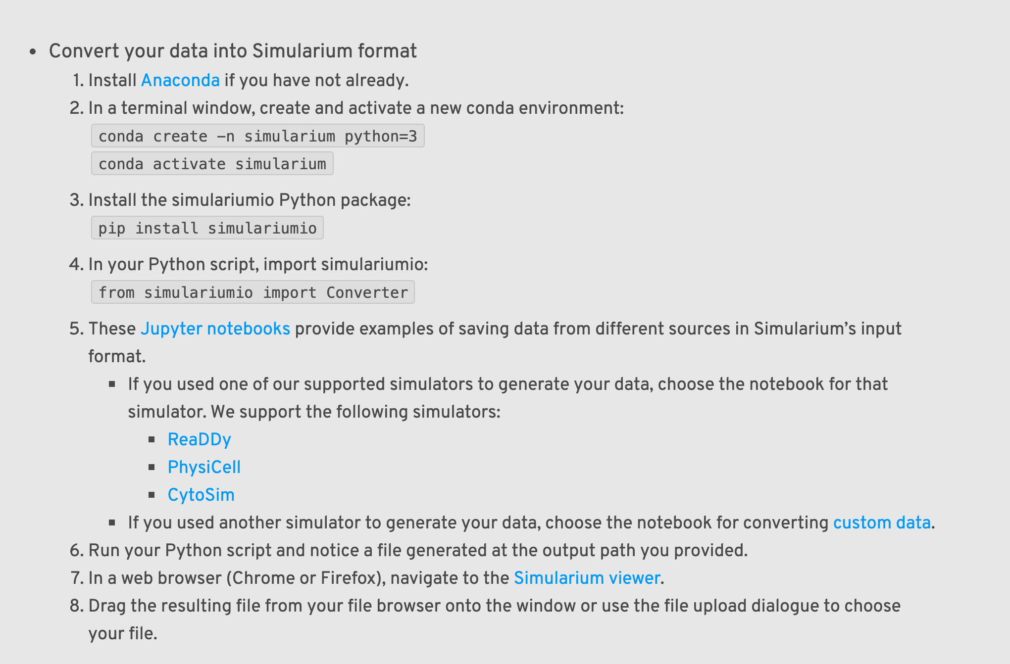 Hmmmm.... I resolved Blair's updates as I went (hard to see the outcome of some formatting updates if I don't resolve), so they're not visible on the Google Doc anymore. But they were all updates to the second major bullet ("Convert your data into Simularium format").