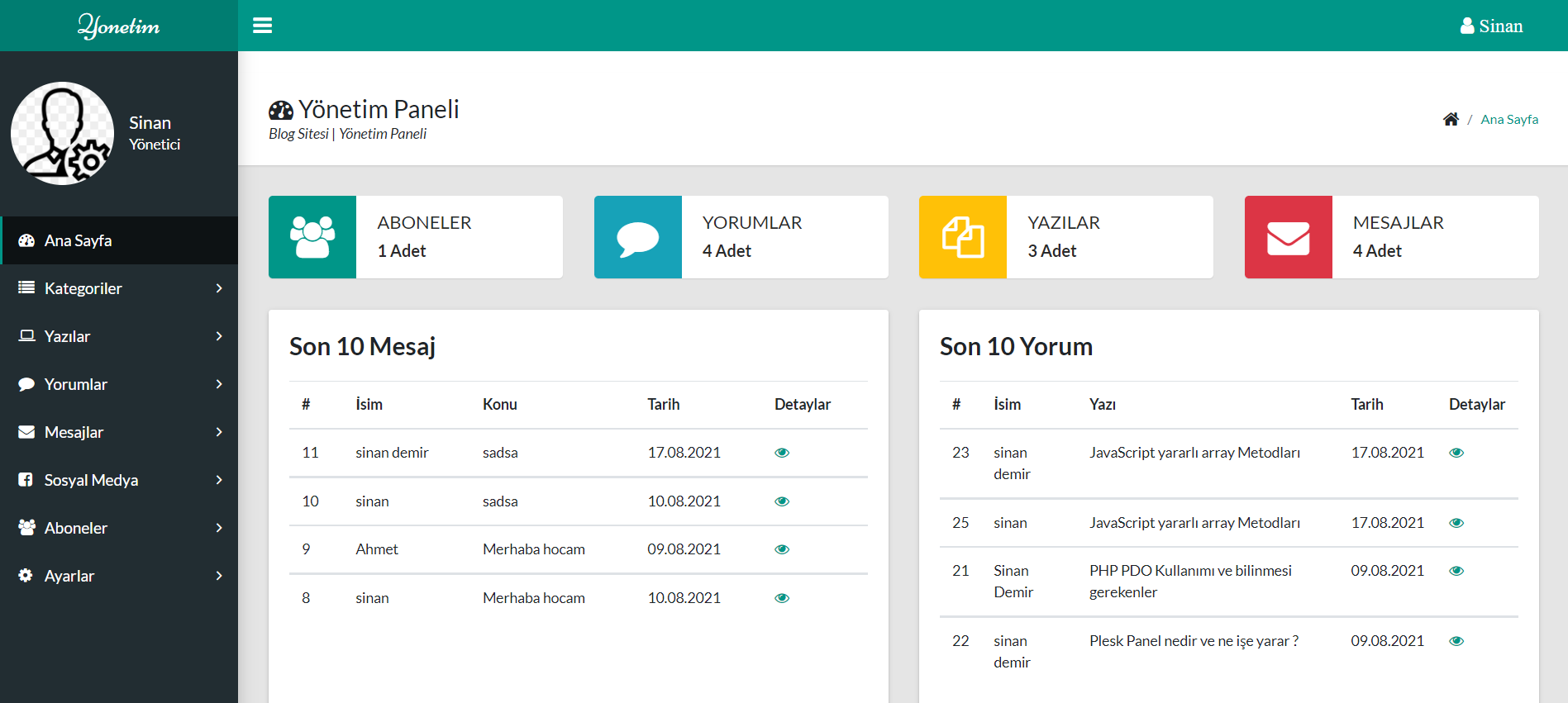 sistem/baglan.phpandadmin/sistem/baglan.php$db = new PDO("mysql:host=localhost;dbname=sinanblog;charset=utf8","root","");