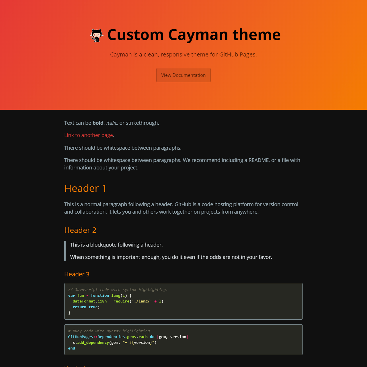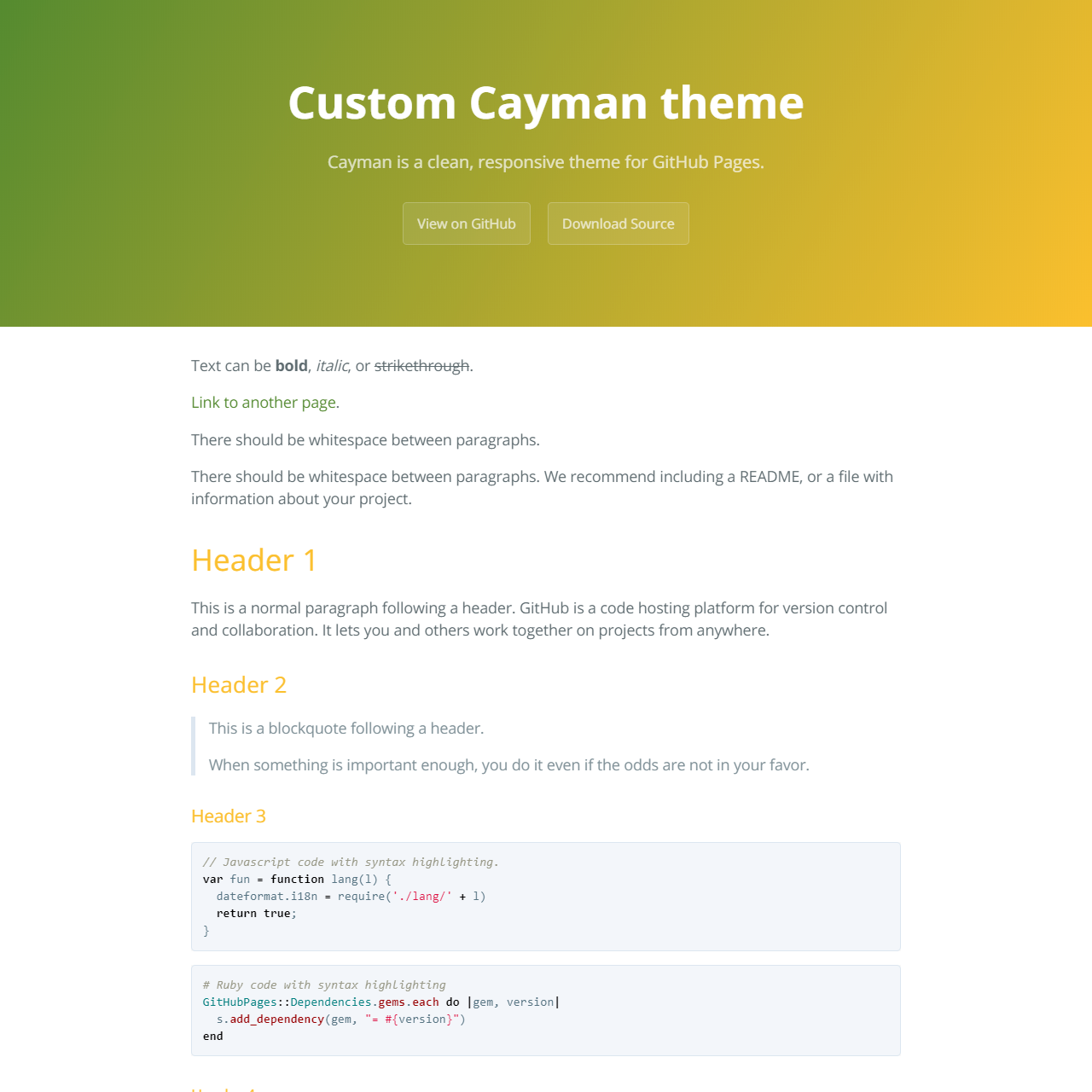 git clone https://github.com/sirius93/cayman-theme-custom) cdinto the theme's directory- Run