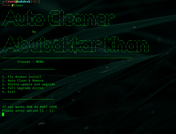 Clean is an bash scripted program, which will clean linux distro and Fix's Broken installation. Tested on kali-Linux