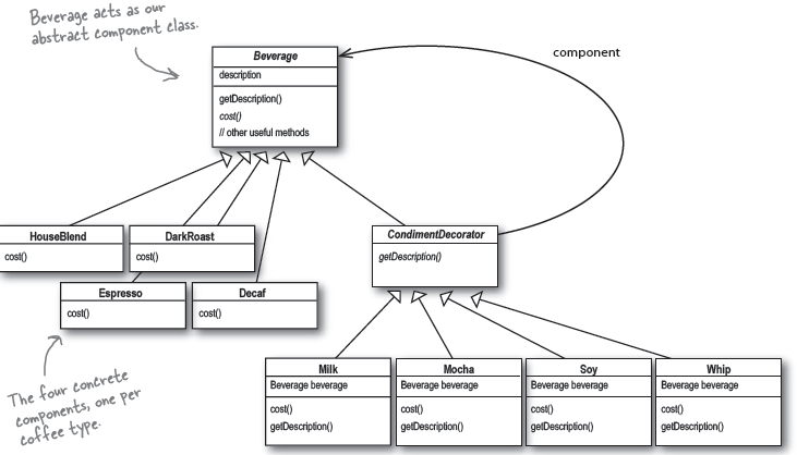 The Decorator Pattern attaches additional responsibilities to an object dynamically. Decorators provide a fl exible alternative to subclassing for extending functionality.