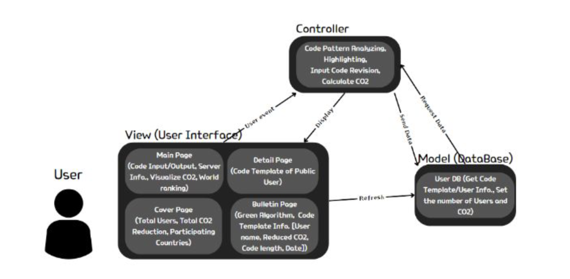 GREEN CO2DING 서비스는 전 세계 개발자들의 코드 탄소 배출량 감축을 독려하기 위해 개발되었습니다. 사용자는 코드를 입력하고, 효율적으로 리팩토링된 코드를 확인할 수 있습니다. 또한, GREEN CO2DING 서비스는 감소된 탄소 배출량을 시각적으로 제공합니다. 국가별 총 탄소 배출 감소량과 순위를 통해 사용자가 더욱 적극적으로 서비스를 이용할 수 있도록 하였습니다. 지금 바로 GREEN CO2DING을 통하여 탄소 감소량 1위 국가가 되어 보세요!