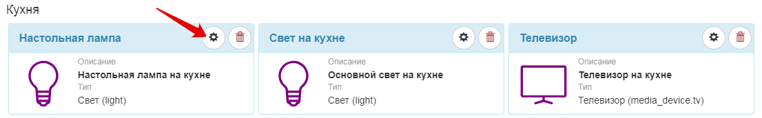 Дальнейшее конфигурирование выполняется на странице редактирования (настройки) устройства.