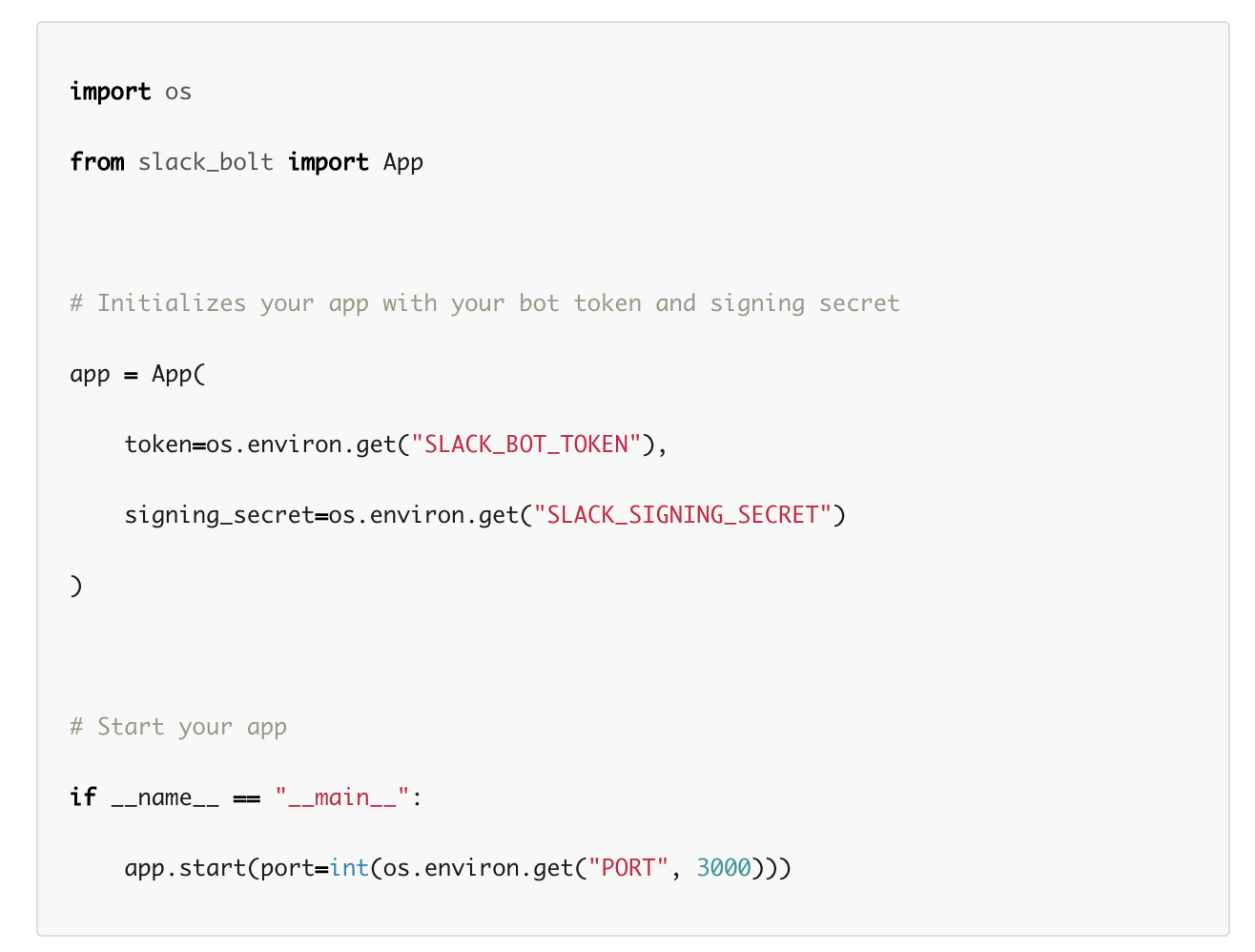 | However, apps running on FaaS or similar runtimes that don't allow you to run threads or processes after returning an HTTP response cannot follow this pattern. Instead, you should set the `process_before_response` flag to `true`. This allows you to call ack() and handle the event in seperate threads or processes. For events that do not require acknowledgement, you can create the listener as you normally would. | ||