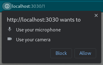 An out-of-context prompt asking them to grant camera and microphone permissions.