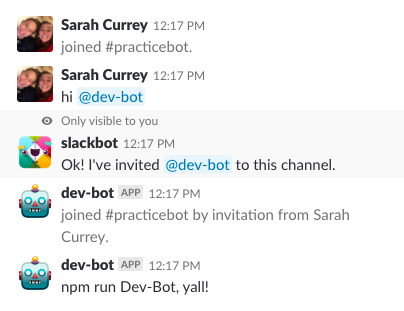 I recently graduated from a full-stack web development bootcamp with General Assembly, and while I study algorithms and search for developer jobs, I decided to take a mini-break to learn how to build a slack bot.
