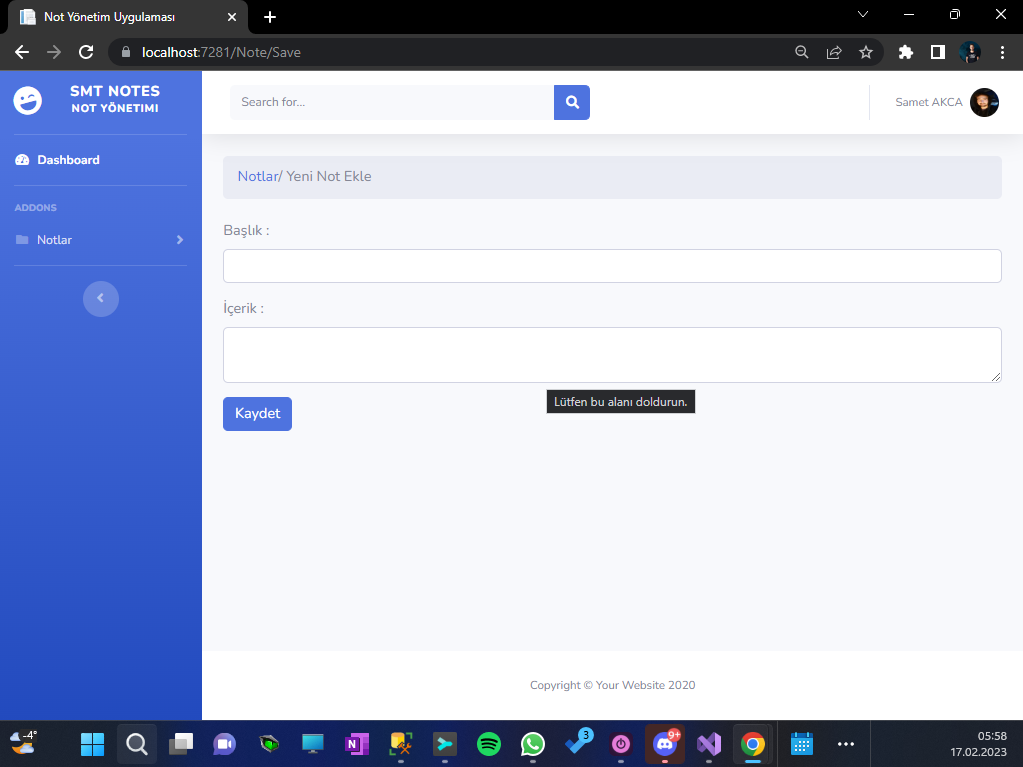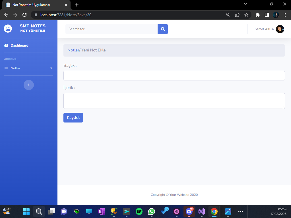 Kullanıcı Notlar ve iç notlar ekleme - Silme - Güncelleme - Listleme ve not detay yapabilir.