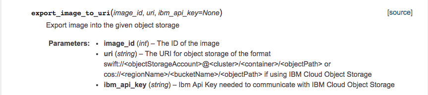 Changed the cos uri to have a and fixed the doc formatting for https://softlayer-api-python-client.readthedocs.io/en/latest/api/managers/image/#SoftLayer.managers.image.ImageManager.export_image_to_uri and https://softlayer-api-python-client.readthedocs.io/en/latest/api/managers/image/#SoftLayer.managers.image.ImageManager.import_image_from_uri