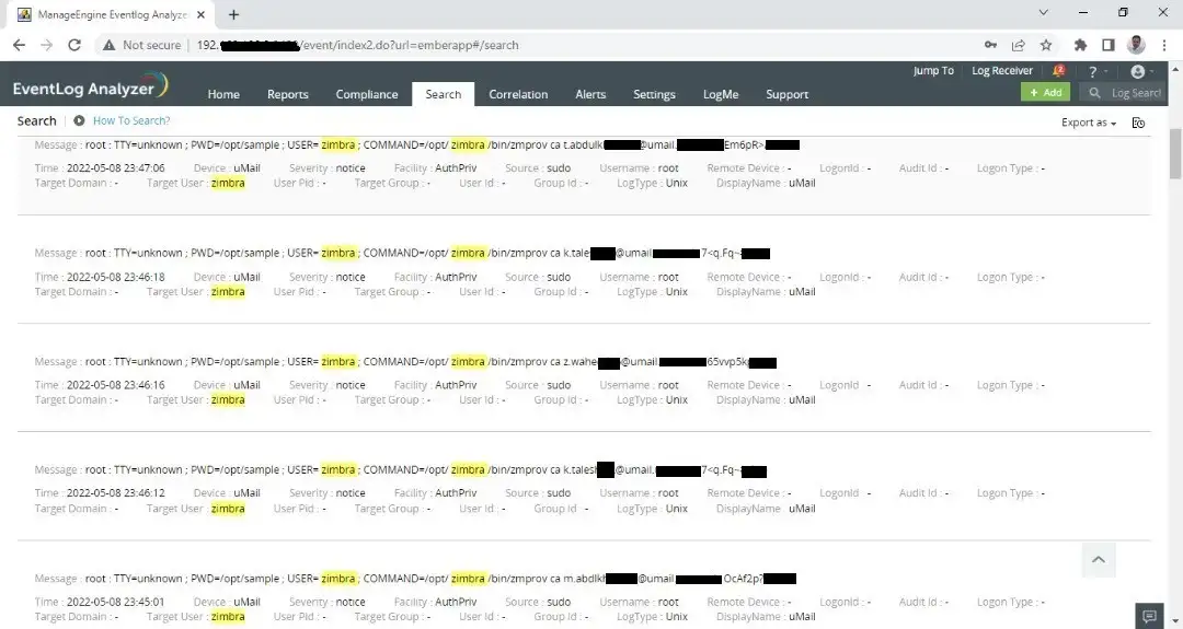/var/log/secure(RHEL/Rocky Linux, or where eversudocalls are logged) – butzmprovby itself does not callsudoat all, and I can not find any hint about a password for my above example usertux@example.netin any syslog file or elsewhere within the syslog stack.Further on: If this security flaw really exists, but was just accidentially described incompletely, it mainly applies by default only to Zimbra multi-server setups with remote syslog, or to regular setups with manually configured remote syslog. On default Zimbra single-server setups without any manually configured remote syslog, the password is not transmitted to foreign systems.