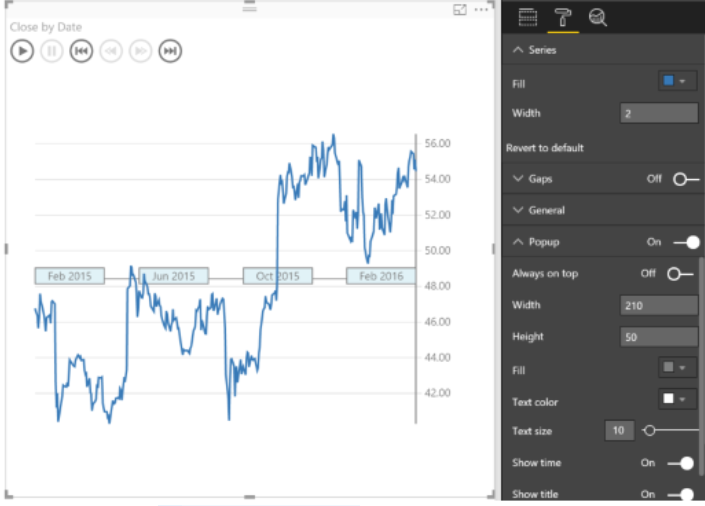 The Pulse Chart allows you to playback the data to see the trend unfold in front of your eyes. When an event appears, the playback pauses to filter the rest of the report, revealing hidden relationships. You can use this feature to grab your audience’s attention and highlight specific insights. There’s an auto play feature that starts the playback when the report loads. Pulse Charts are ideal for use with publish to web or when sharing reports with your coworkers.