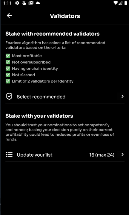 * Remember custom validators when returning to start chaning screen * Use selected validators as preset for custom validators * Code style * Fix/max validators per nominator (#343) * Use runtime constant for max nominations + do not show `update your list` for empty validator list * Code style * Fix - runtime constants in settings provider are not invalidated after network/runtime change * Code style