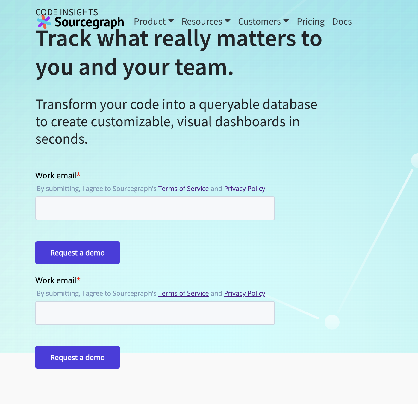 Hmm, yea it's probably wanted for both "Request demo" button spots on the page. Updated! 👍 @bretthayes |