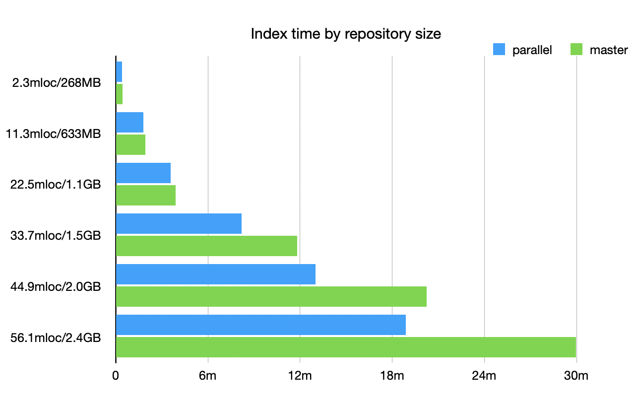 This makes the traversal of packages for the definition, reference, and reference result passes happen concurrently (up to the number of logical CPUs on the index machine).