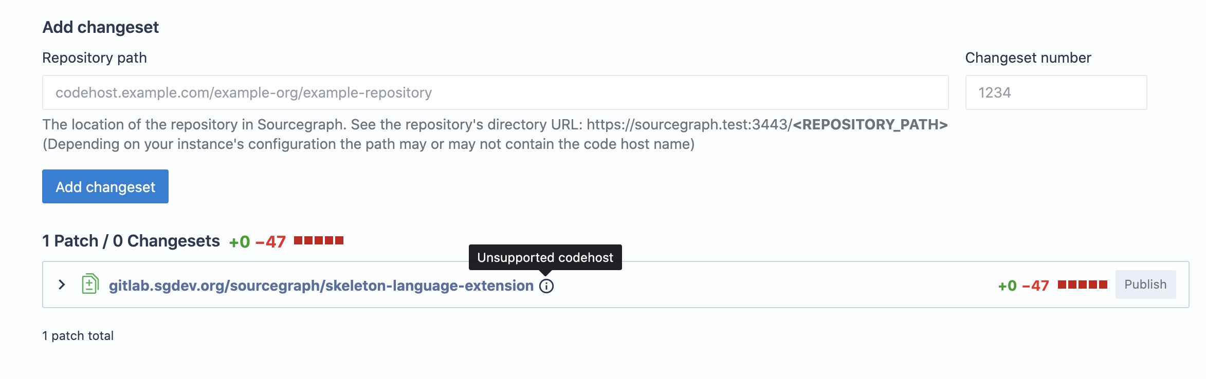 IsRepoSupportedchecks so that patches from unsupported repositories are accepted, but not published (checks need to be moved to theServiceand possibly theExecChangesetJobsfunction)publishChangesetmutation we should return an errorpublishCampaignChangesetsmutation we should skip themPublishable: booleanproperty toPatchin the GraphQL APIsrc-cliFor the last task: Do we really need to? We currently have a flag to allow creating patches for unsupported codehosts, which helps here. Removing it would mean we default to that behavior and I think that more customers would want to omit them than would want to store them for future use by default.