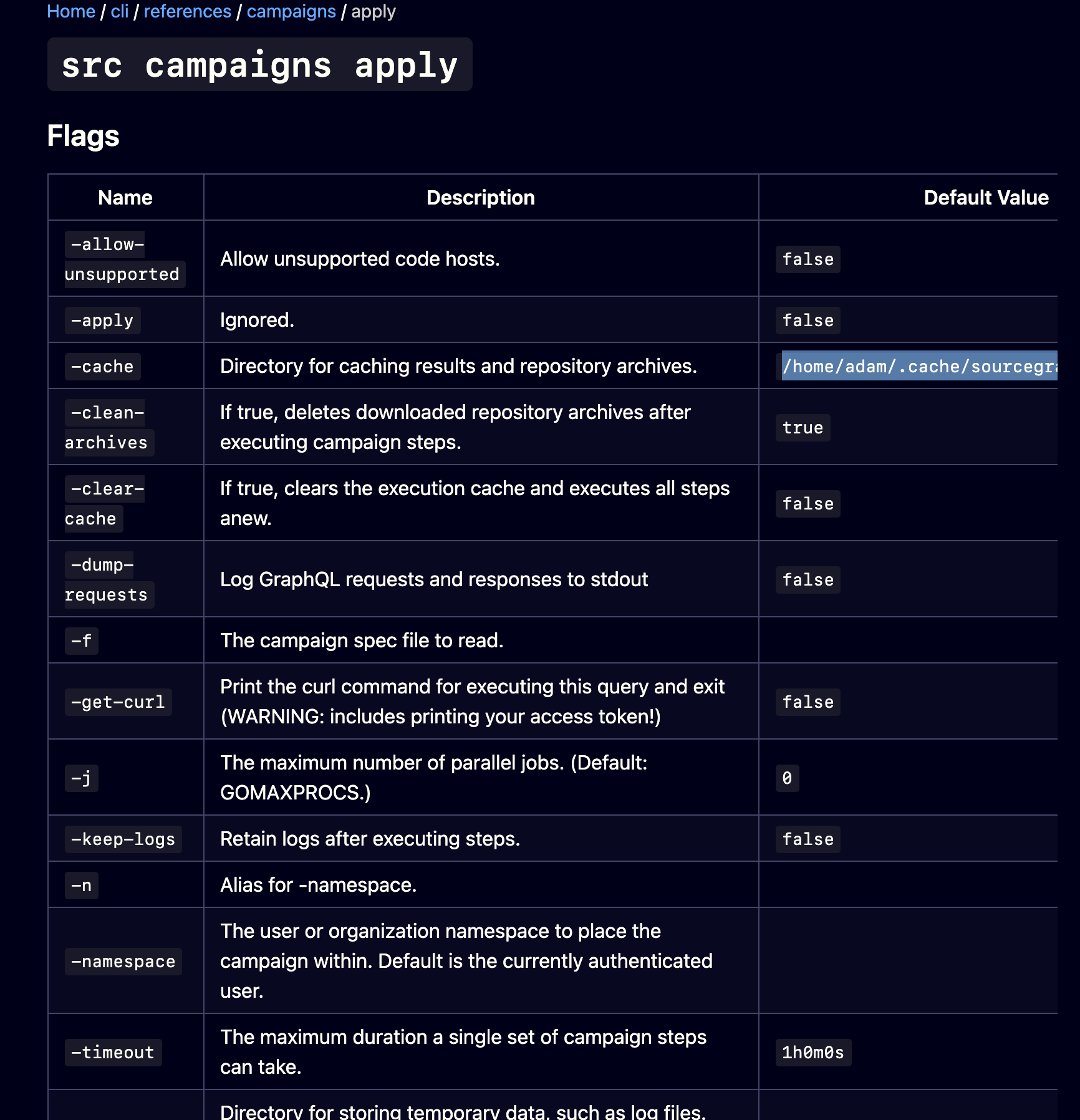 @eseliger Updated in conjunction with sourcegraph/src-cli@f48121d.  |