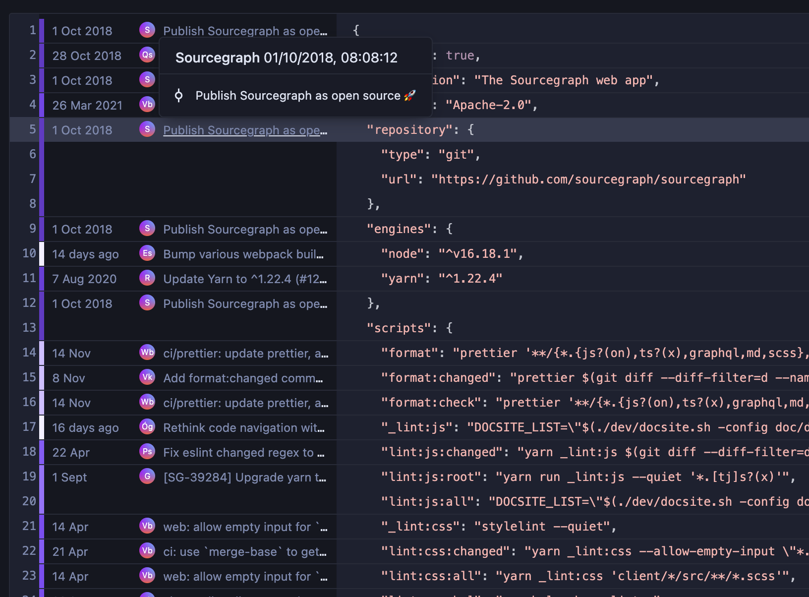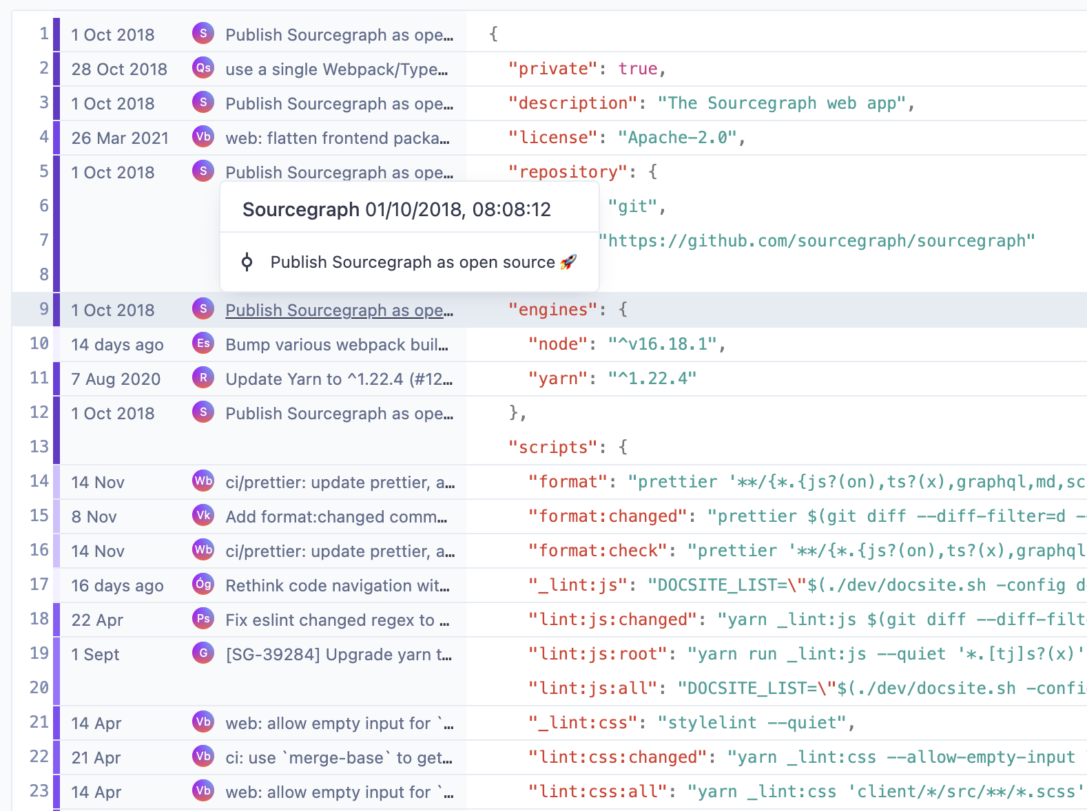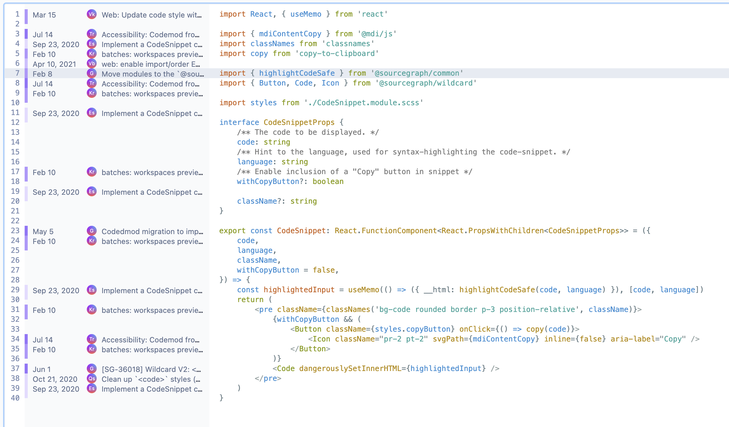 CodeMirror blob is enabled by default on dotcom and s2 instances and would likely be the default in the upcoming release. With that said, I think we can even not ship recency and hunks separators for the table code view (unless it adds too much code overhead in reused |