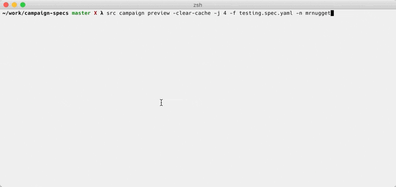 * Add 'campaigns new' command * Print success message * Update cmd/src/campaigns_new.go Co-authored-by: Adam Harvey <aharvey@sourcegraph.com> * Show current worker goroutine status below progress bar (#338) * First try to add progress with status bars * Refactoring and renaming * Tiny step and refactoring * Get ProgressWithStatusBars working * Change API of progressWithStatusbars * Refactor StatusBar printing * Embed ProgressTTY in ProgressWithStatusBarsTTY * More merging of progressTTY and progressWithStatusbarsTTY * Add simple progress with status bars * Move demo of progress with bars to _examples * Restore overwritten methods * Restore more overwritten methods * Restore another overwritten method * WIP: Wire up status bars with executor * Print status bars below progress bar and add ASCII box characters * WIP1: Introduce campaign progress printer * WIP2: More refactoring of campaign status printing * More cleanup and refactoring * Change styling of progress bar with status * Add time to StatusBar and display right-aligned * Use a const * Add CHANGELOG entry * Ignore invisible characters for text length in progress bar * Update CHANGELOG.md Co-authored-by: Adam Harvey <aharvey@sourcegraph.com> * Erase previous content with spaces on blank line * Thin box drawing lines * Improve non-TTY output for progress indicators with status bars. Co-authored-by: Adam Harvey <aharvey@sourcegraph.com> Co-authored-by: Adam Harvey <adam@adamharvey.name> * Incorporate feedback * Change placeholders in campaign skeleton Co-authored-by: Adam Harvey <aharvey@sourcegraph.com> Co-authored-by: Adam Harvey <adam@adamharvey.name>