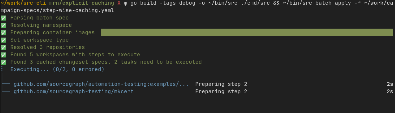 This PR here pulls the cache-checking out of the task execution and makes it a separate step in the batch spec execution and in the UI:
