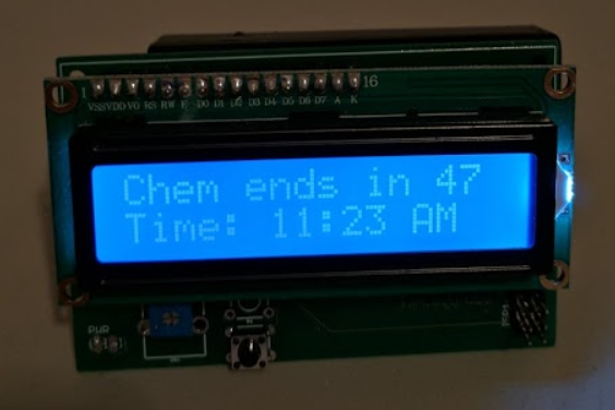 When there is less than a minute remaining in a class, the main loop will only sleep for 1 second, updating the display with the number of seconds remaining until the bell rings and flashing the display on and off. The idea was to go for a cool final countdown effect, but the clock actually drifts by a second or two every day, so the final countdown to the bell doens't really work too well.