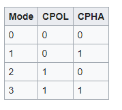 Here are the SPI modes: