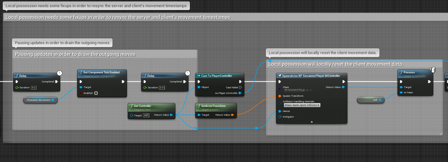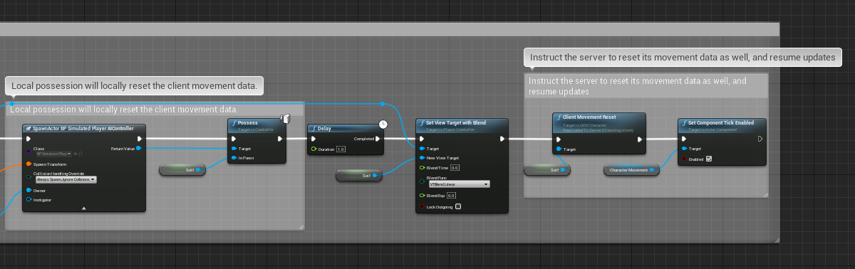 Changes to BP_SimulatedPlayerCharacter, with comments.