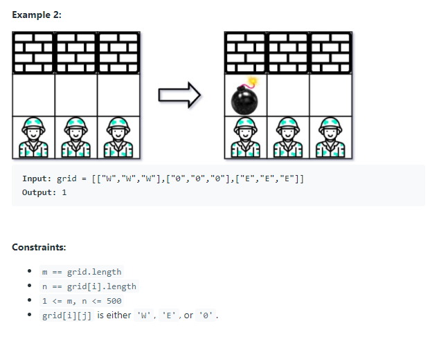 Yukarıdaki gridde W'nin solundaki boş (0) yere bombayı yerleştirmek 3 düşmanı birden öldürüyor.