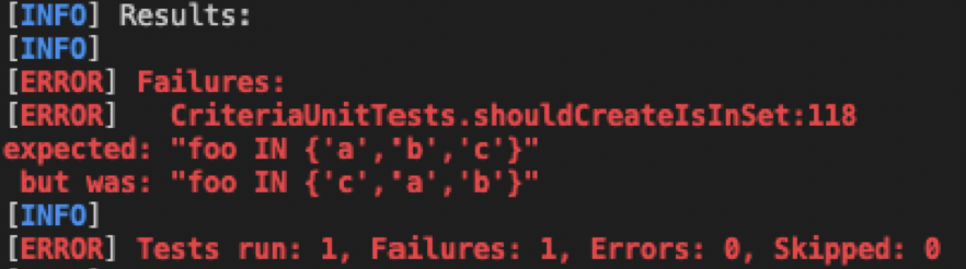 CriteriaUnitTests#shouldCreateIsInSetis due to the nondeterministic iteration order ofLines 113 to 119 in 880787f