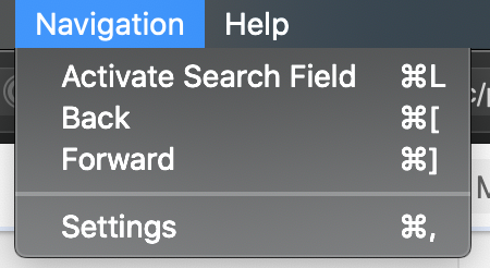To make a keyboard shortcut local in Electron, it has to be put in some menu. I put it under Navigation below a separator, with the idea that maybe some other views could be added there as well.