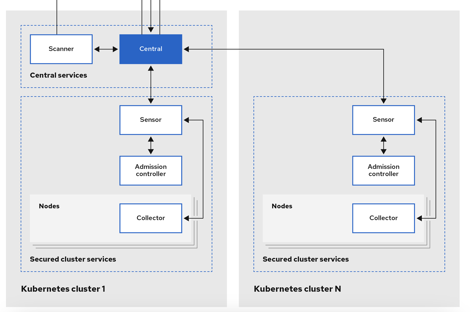The scanner component is only available next to the Central and scans the images that all sensors report to the central services. If the Kubernetes clusters are across regions ( Europe, the US or others) and each region has a dedicated registry, the scanner will try to pull images from all registries across all regions and can impact the bandwidth available across regions.
