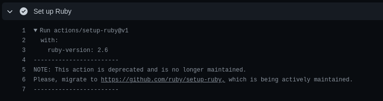 Replaces deprecated action actions/setup-ruby with ruby/setup-ruby