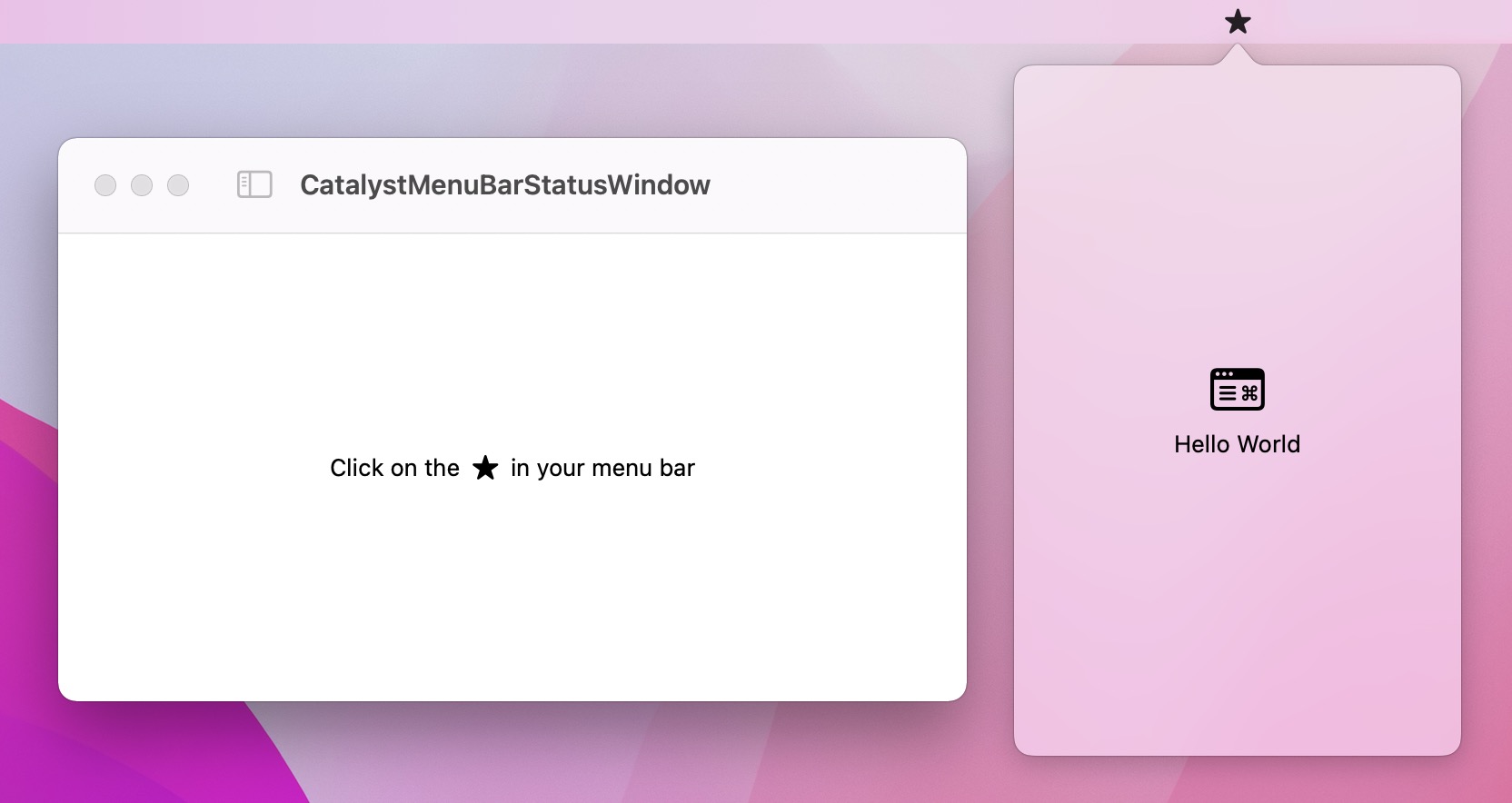 This sample code showcases a method of presenting UIKit (or Catalyst-specific SwiftUI) content from the status menu area on macOS.